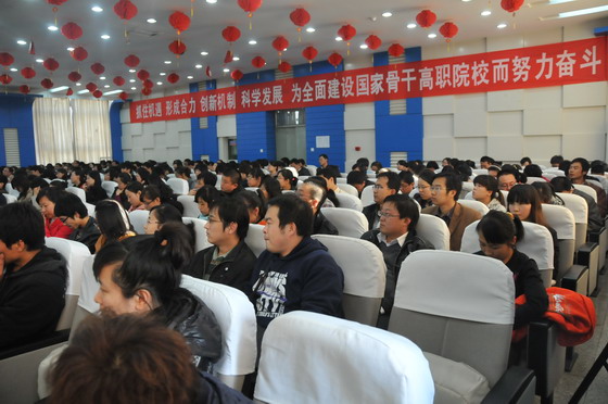10月25日下午,新葡京官网在坞城校区七楼会议室隆重召开了2011年青年教师培训动员大会,院领导,相关处室和各教学系部负责人,全院2004年(含)以后进校的全体青年教师参加了动员大会。院党委书记崔毅在动员大会上作了题为《全面加强师资队伍建设,积极推动骨干院校建设》的动员报告,动员大会由院党委副书记李志刚主持。
