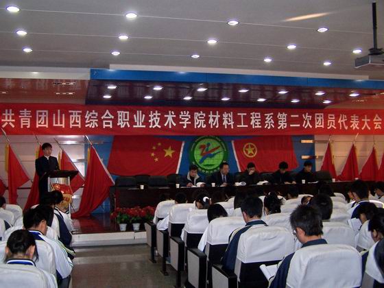 2008年12月6日上午8:30,在庄严的国际歌声中,共青团山西综合职业技术学院材料工程系第二届团员代表大会在七楼多媒体报告厅隆重开幕,全体代表怀着喜悦的心情,肩负全系同学的重托,光荣的出席了这次大会,共商我系共青团工作之大计。