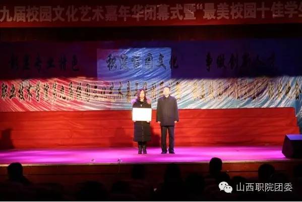 本届校园文化艺术嘉年华,团委、思政部、编辑部、社体部、心理健康教育中心获得了本届校园文化艺术嘉年华特色活动奖;机械工程学院获得了本届校园文化艺术嘉年华优秀组织奖;材料与建筑工程学院、信息工程学院、物流商务学院获得了本届校园文化艺术嘉年华组织奖;电气工程与自动化系获得了本届校园文化艺术嘉年华系部金奖;材料工程系、会计系获得了本届校园文化艺术嘉年华系部银奖;电子信息工程系、计算机工程系、建筑工程系获得了本届校园文化艺术嘉年华铜奖;物流管理系、建筑装饰系、商贸旅游系获得了本届校园文化艺术嘉年华系部优秀奖;孙智明、苏丽婷、刘耀楠、尉晓林、王国伟、柴浩元、张志伟、马年鹏、张兰分、乔子真获得2015年“最美校园十佳学生”称号。